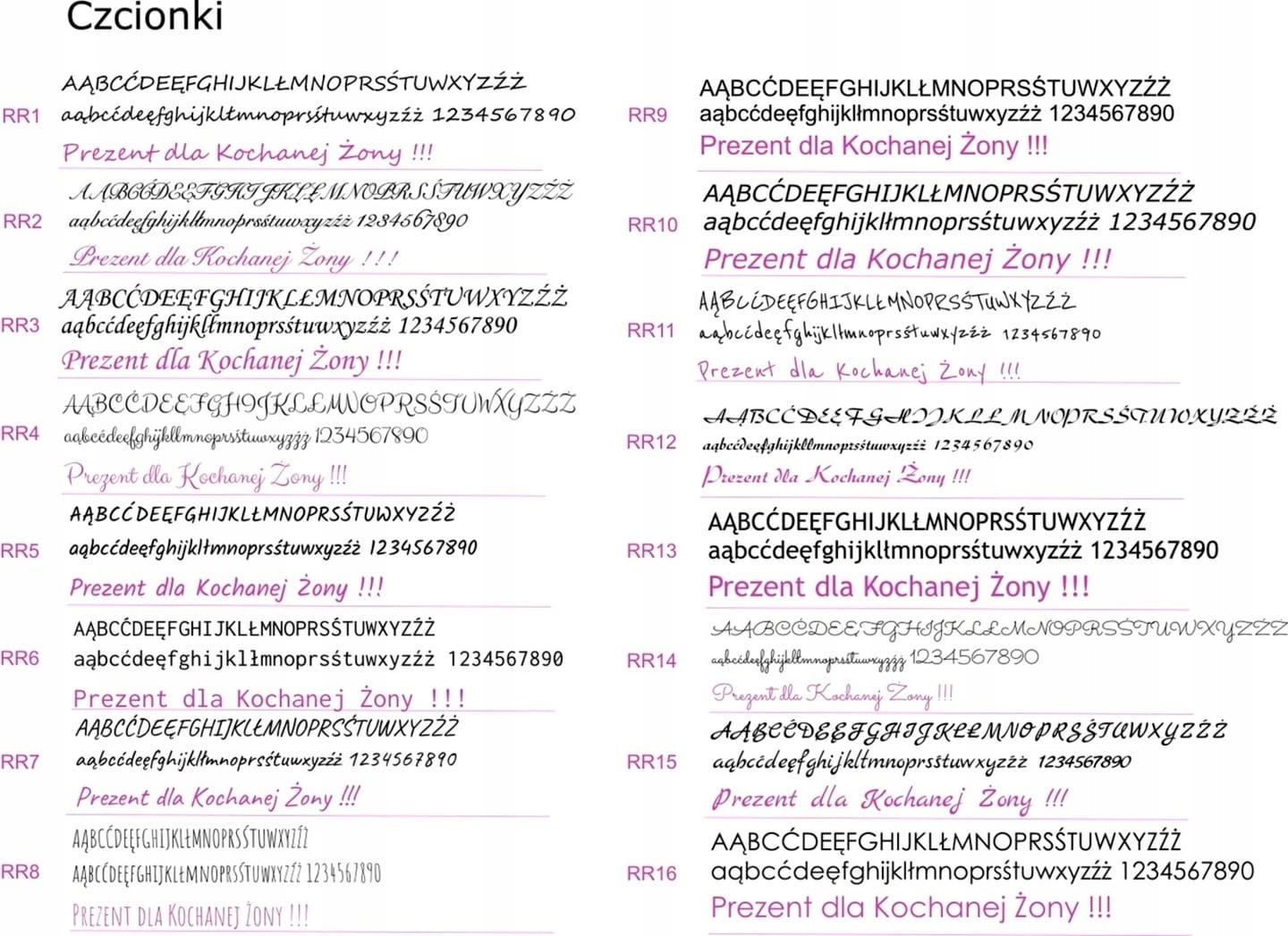 - Wybraną czcionkę z podanych na zdjęciu (podaj jej oznaczenie - np. RR3)